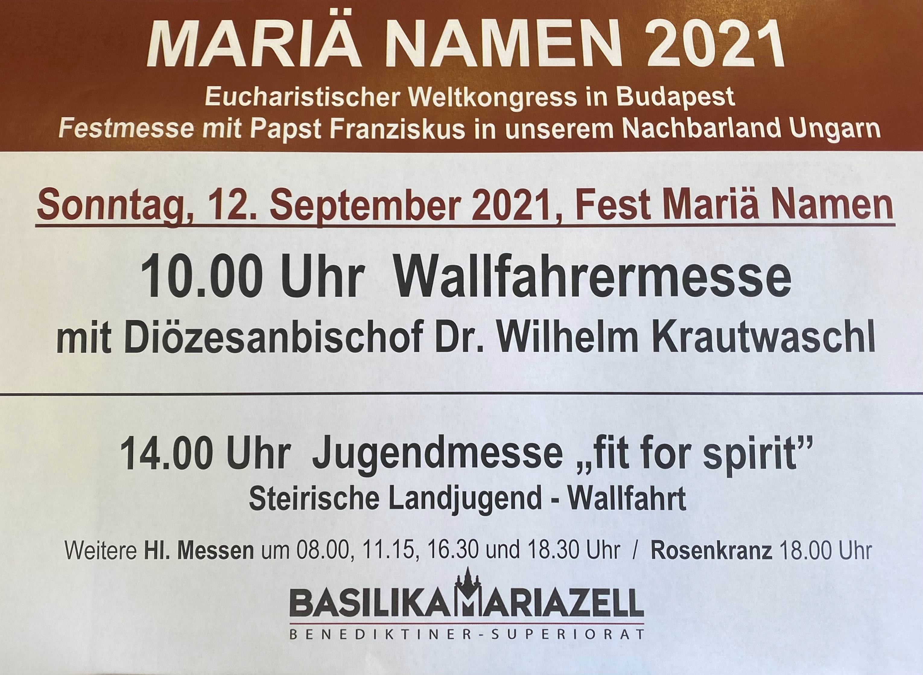 Diözesanbischof Dr. Wilhelm Krautwaschl reist am Sonntag nach Mariazell um zeitgleich mit dem Eucharistischen Weltkongress in Budapest die heilige Messe in Mariazell zu feiern.