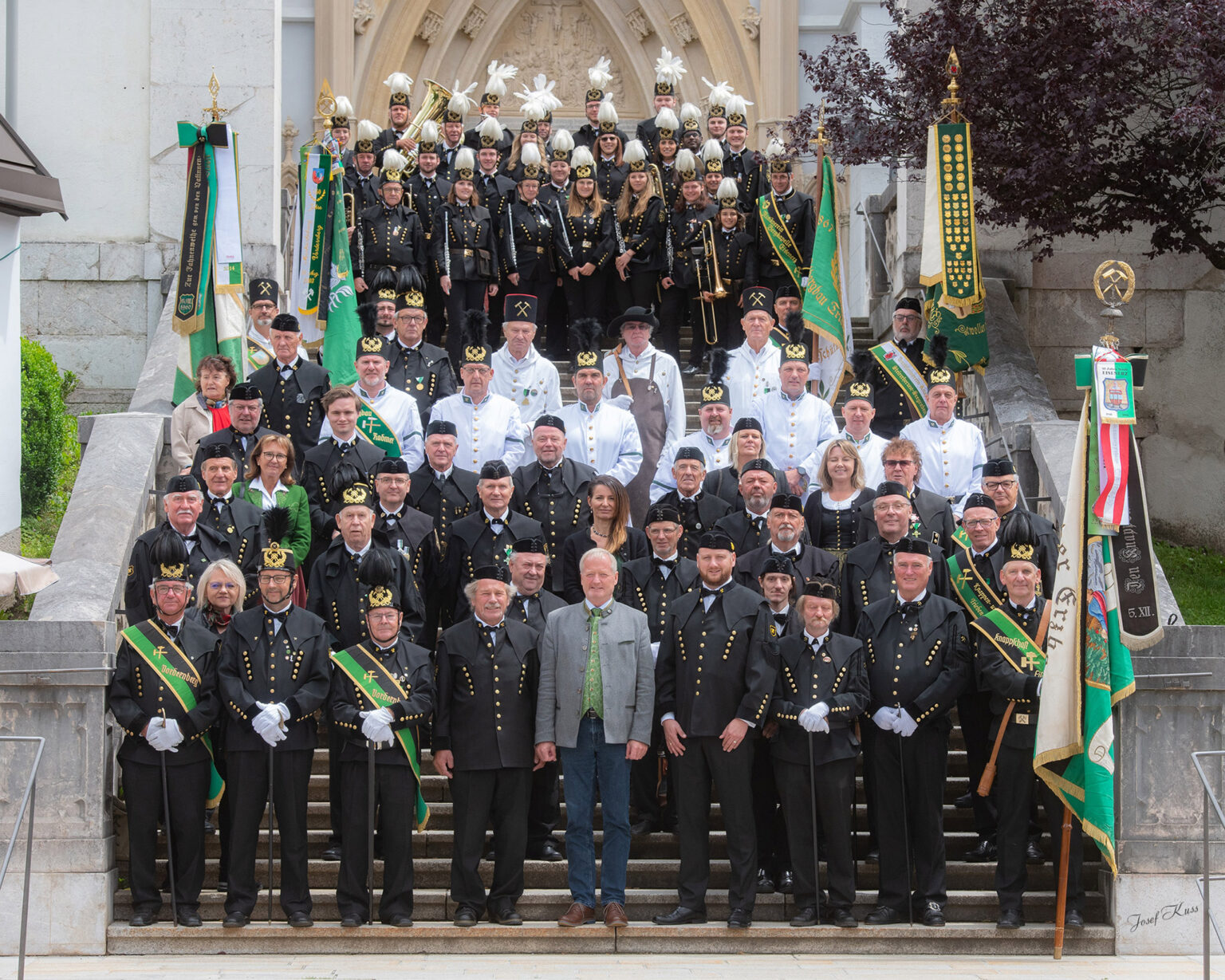 Bei der Wallfahrt mit dabei: u.a. Abordnungen der Knappschaften Leoben-Seegraben, Vordernberg, Eisenerz, Radmer und Trieben sowie die Bergmusikkapelle Eisenerz. Herzlichen Dank an Fred Lindmoser für den Text und Josef Kuss für das schöne Gruppenfoto der Knappenwallfahrt-Teilnehmer.