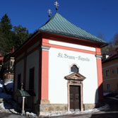 Sankt Sebastianban a templom építését 1644-ben kezdték meg, a máriacelli kegytemplom építőmesterének, Domenico Sciassiának tervei szerint. A kereszt alaprajzú szentegyház az utolsó zarándok-állomás a Bécsből Máriacellbe vezető úton, a„via sacra"-n. Sankt Sebastiannak önálló közigazgatása van, de a máriacelli egyházközséghez tartozik. Megközelíthető a kegyhelytől országúton is, de gyalogosan a dombok alján vezető árnyas erdei ösvény csábítóbb. Az oltár előtt álló oszlop Szent Sebestyén vértanúságát jeleníti meg. A főoltár 1643-ból származik, Michael Hönel alkotása. Eredetileg a bazilikába szánták. 1730-ban átalakították és itt állították föl. Fridericus Stilpp oltárképe két részből áll. Mária mennybevétele, fölül pedig megkoronázása. A felső rész két oldalán a két Szent János: a keresztelő és az evangélista szobra, kétoldalt pedig az ismert védőszentek: Lambert és Benedek alakja áll. A domináló oszlop-pár szép faragásai a rózsafüzér misztériumait ábrázolják. A mellékoltárokon Szent Rozália és Szent Rókus jelennek meg. Sebestyénnel együtt a pestis ellen hívták hármukat segítségül.